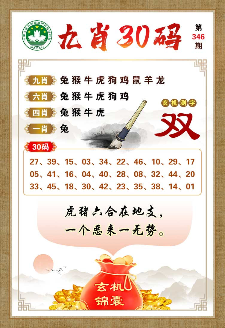 | 346期: | 猴兔鸡牛 | 开:?00 |